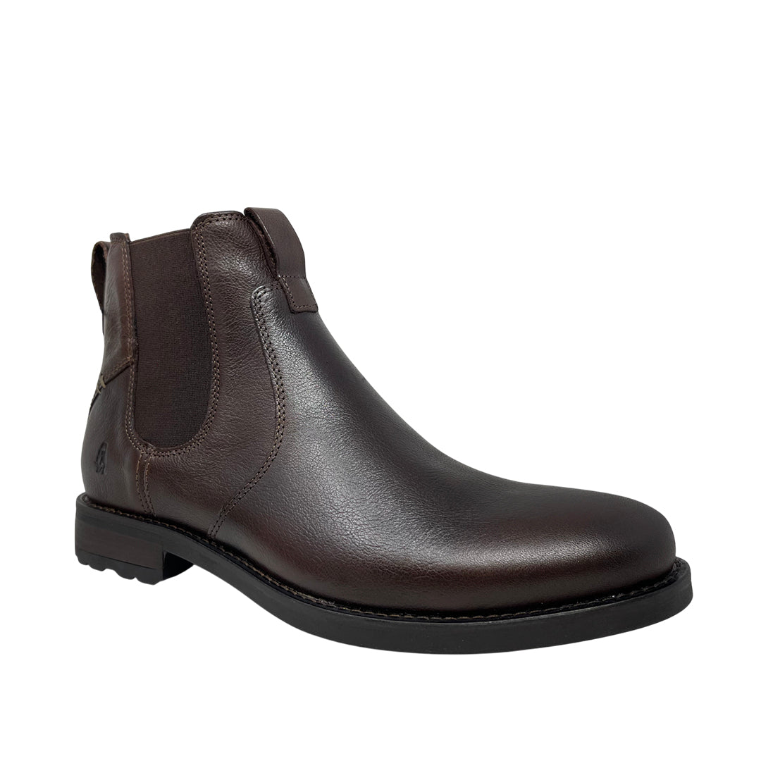 Botas Riverland Chelsea para hombre en color café, fabricadas en cuero y material sintético. Incorporan tecnología Bounce™ con plantilla extraíble de alta memoria que brinda rebote de energía, mantiene su forma y ofrece comodidad duradera.