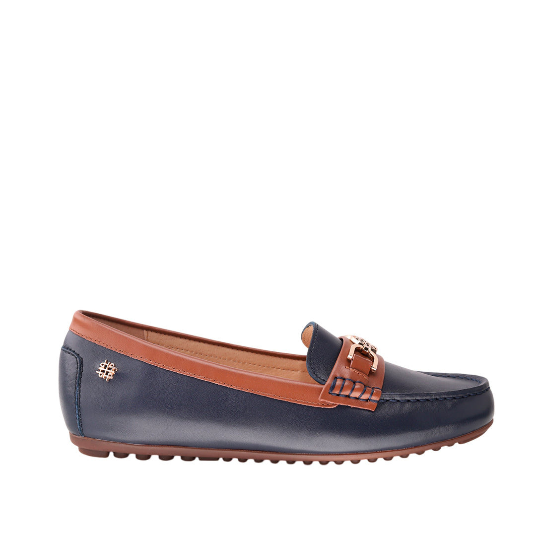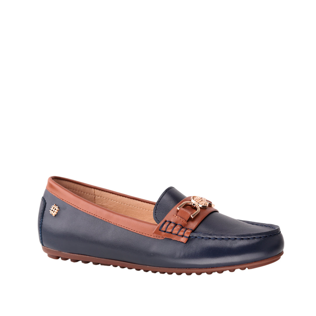 Mocasines Lorry 4 para mujer en color navy, fabricados en cuero y hule para suavidad, flexibilidad y resistencia. Propuesta clásica y ligera para comodidad diaria y un estilo fácil de combinar.