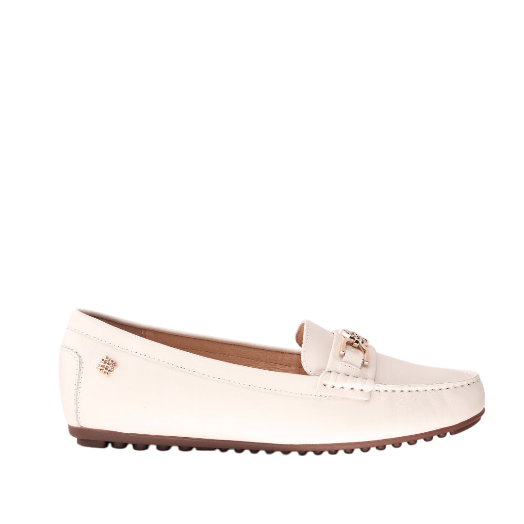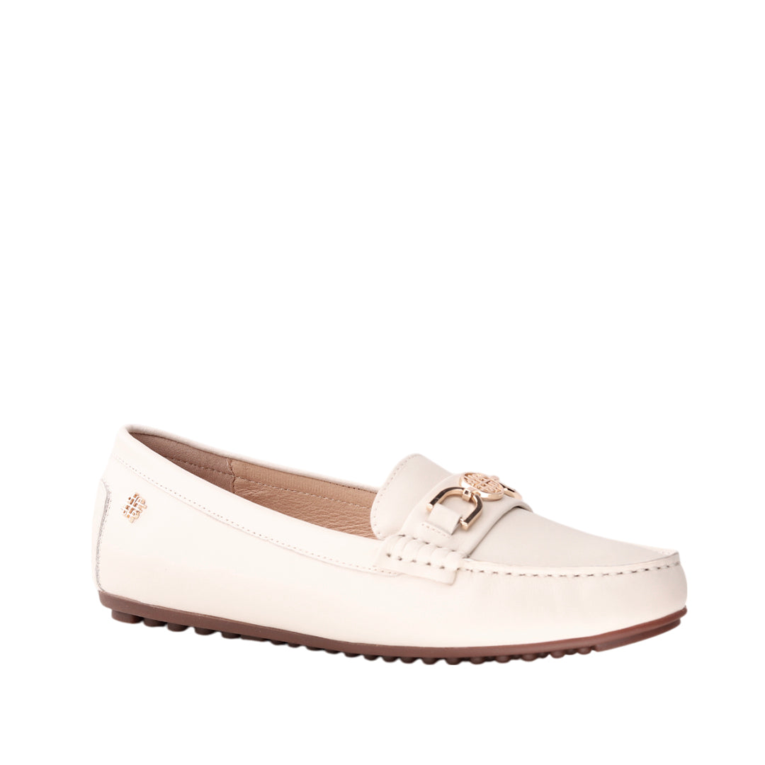 Mocasines Lorry 4 para mujer en color hueso, fabricados en cuero y hule para una pisada suave y flexible. Su diseño elegante y ligero ofrece comodidad diaria y un estilo versátil para cualquier ocasión.