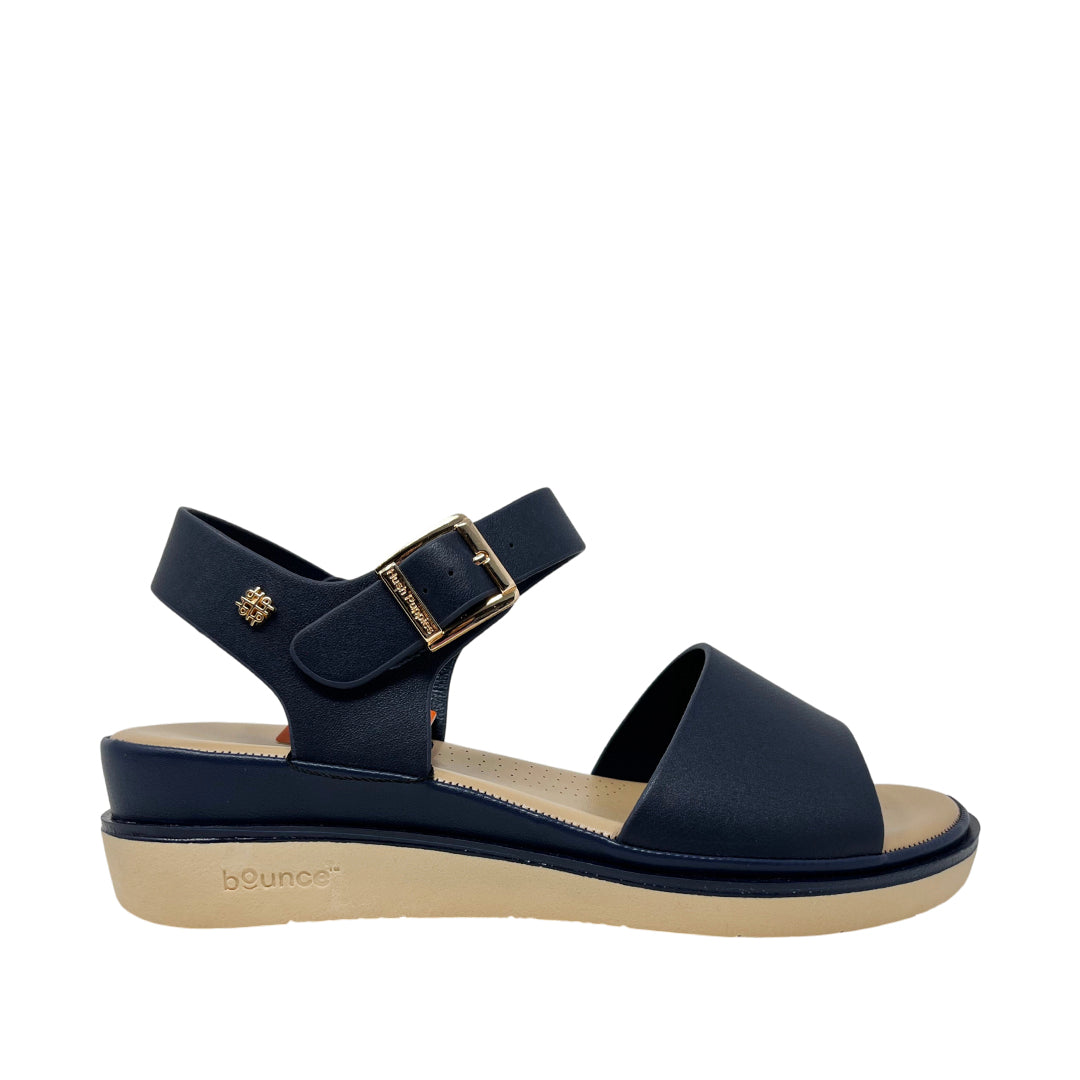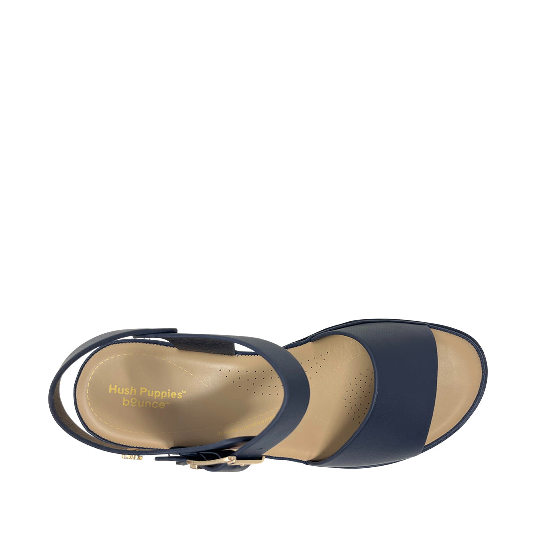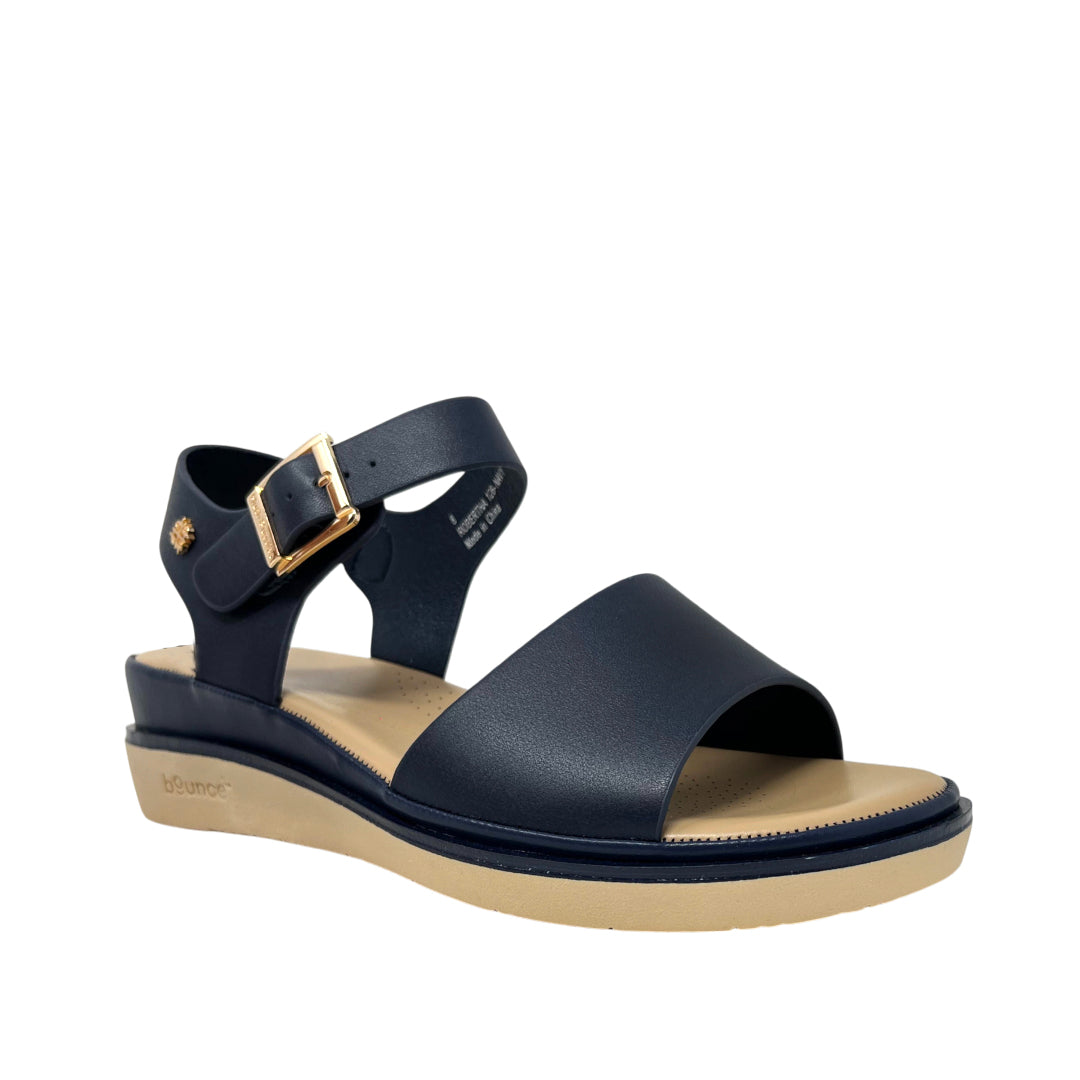 Sandalias flats Robertha para mujer color navy, en cuero con máxima comodidad. Tecnología Bounce™ con plantilla extraíble de alta memoria para rebote y durabilidad.