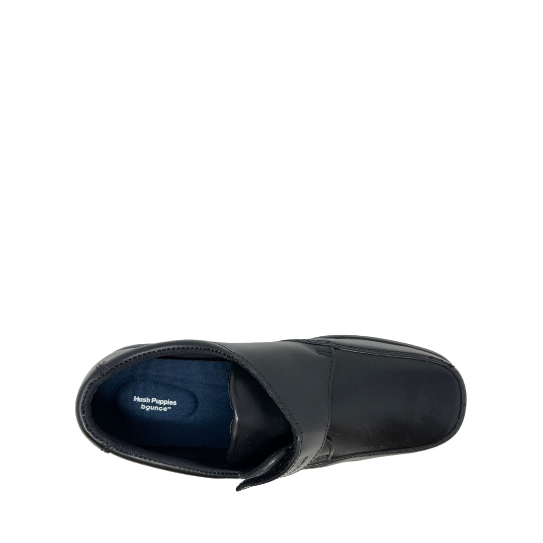 Zapatos escolares Luka para niño en color negro, con tecnología Bounce™. Su plantilla extraíble de alta memoria ofrece rebote de energía en cada paso, comodidad durante todo el día y recuperación de forma tras el uso, con buena durabilidad para la rutina escolar.