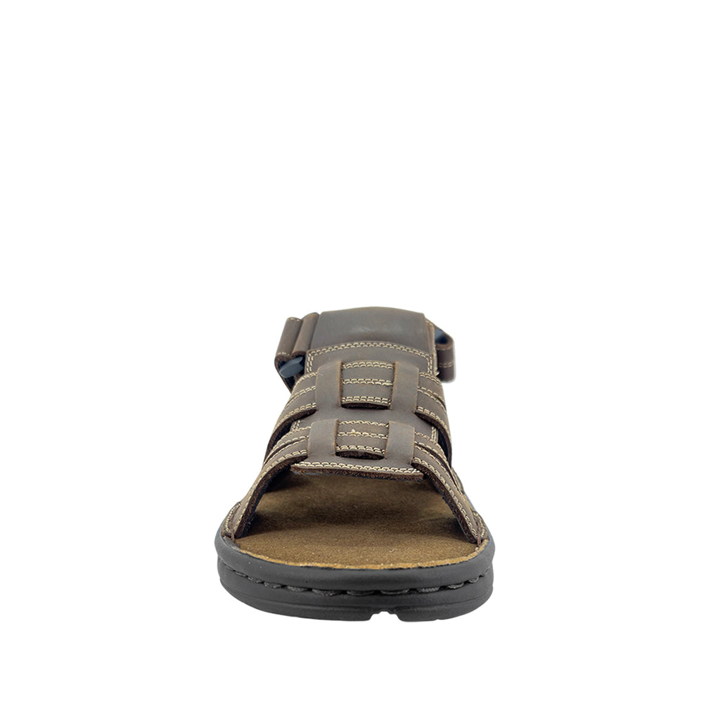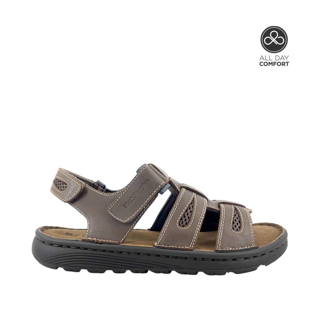 Las sandalias Rivera para hombre en color café están hechas de cuero y cuentan con tecnología All Day Comfort. Su plantilla Bounce, combinada con una talonera personalizada impresa en 3D, ofrece una amortiguación superior y duradera, garantizando comodidad y soporte durante todo el día.