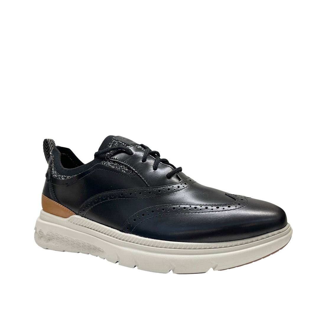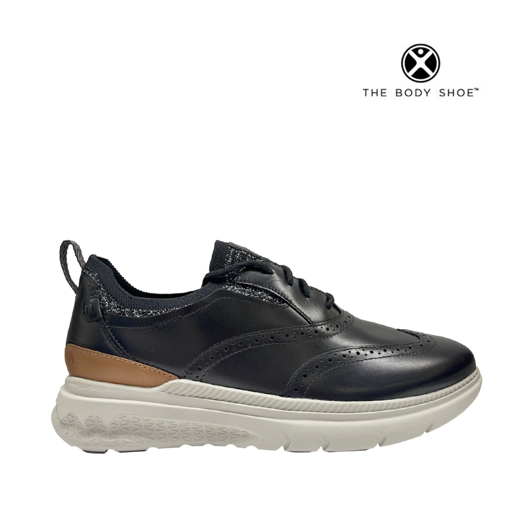 Casuales Excel Wingtip para hombre en color negro con tecnología The Body Shoe™ (antimicrobiano y absorción de humedad). Ranuras de flexión para mayor comodidad y movimiento fluido en cada paso.